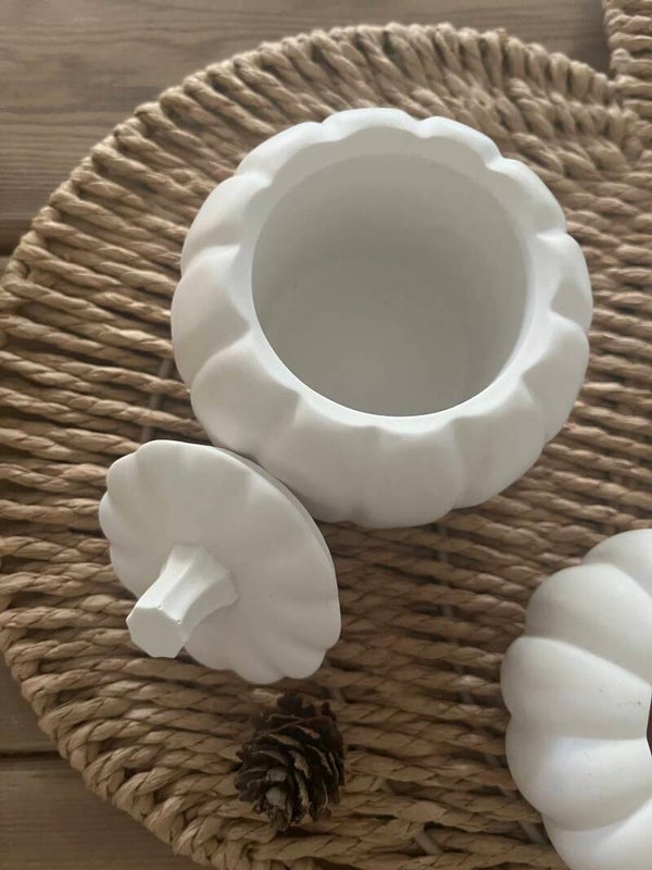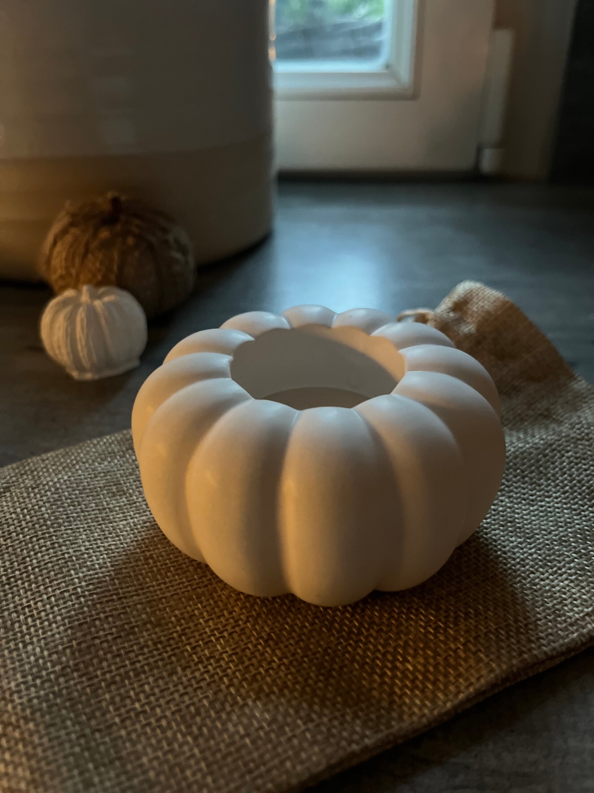 Citrouilles, porte-bougies et vide-poches en forme de feuille, tous réalisés à la main en poudre de céramique 🌙🤍