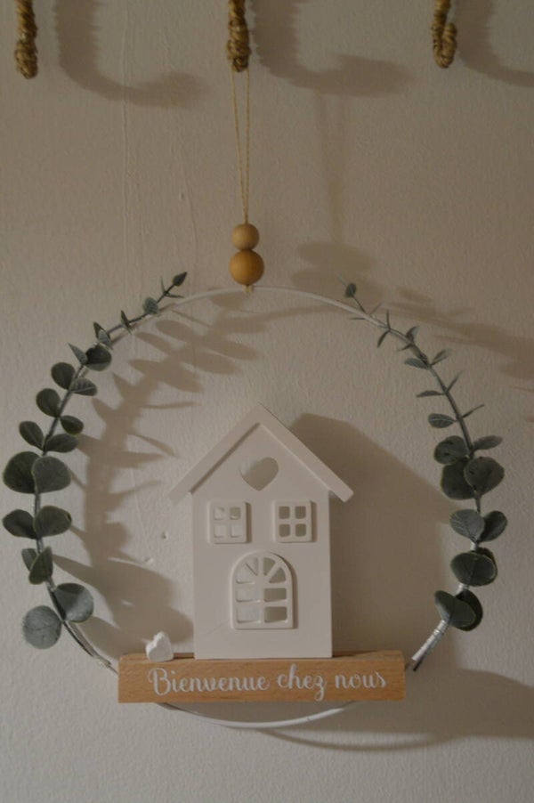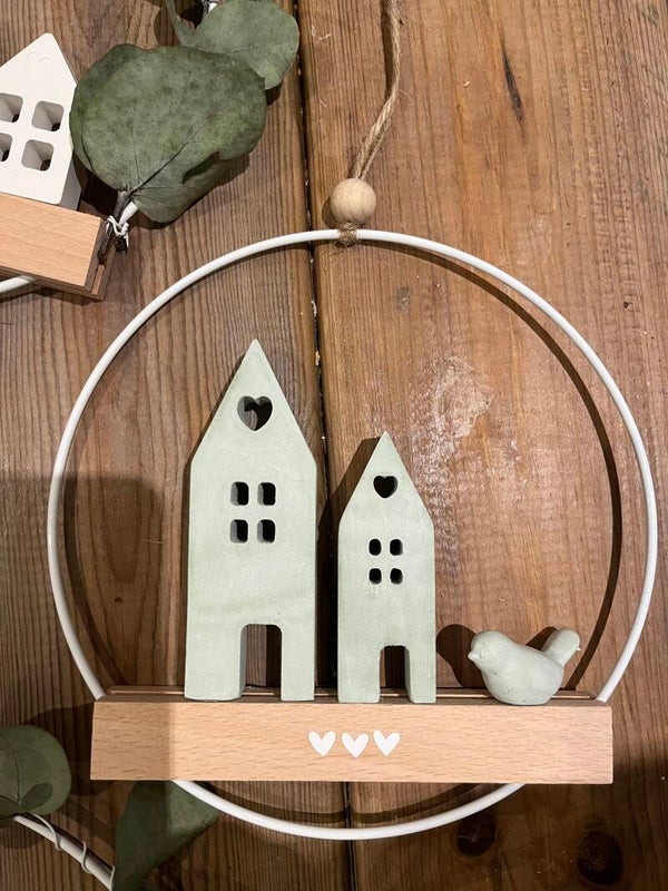 Personnalisation possible : précisez dans le cadre personnalisation forme et couleur des maisons, coeur ou oiseau, texte...