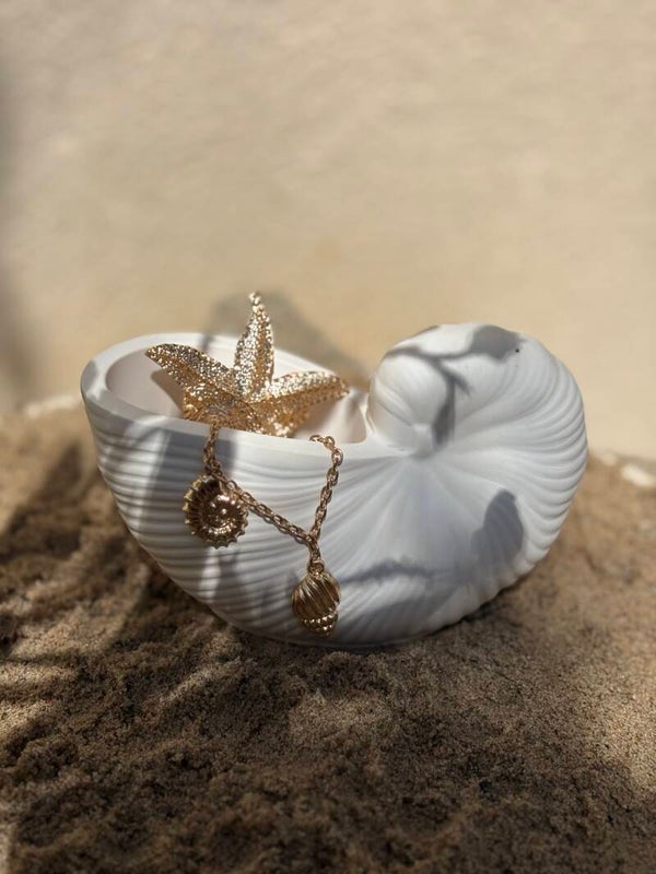 Chaque création, façonnée autour des formes délicates de coquillages et d’étoiles de mer, capture l’esprit du bord de mer.