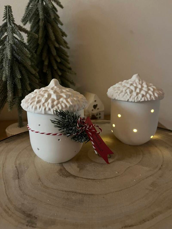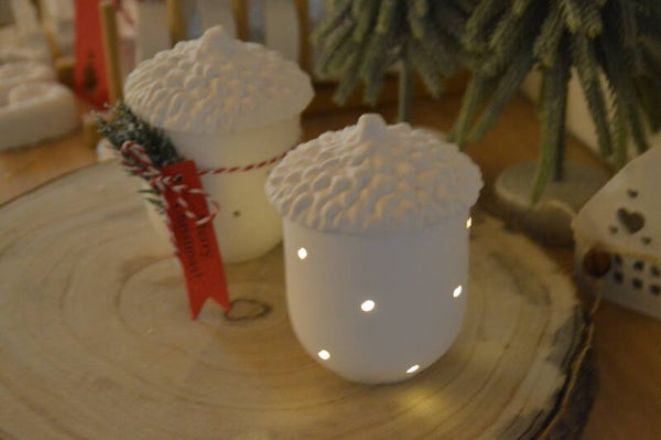 Photophore en forme de gland : délicat et poétique , il diffuse une lumière douce et apaisante