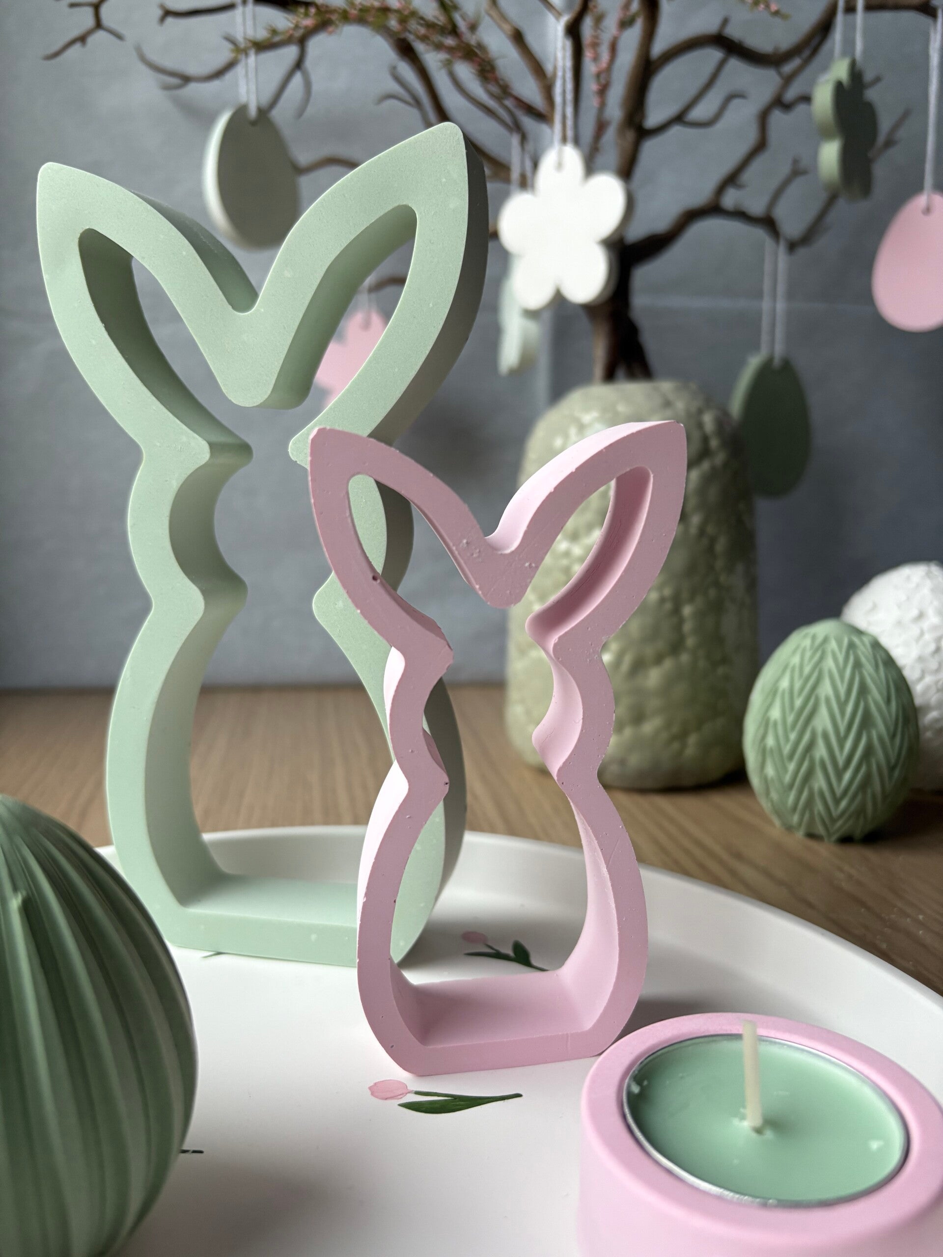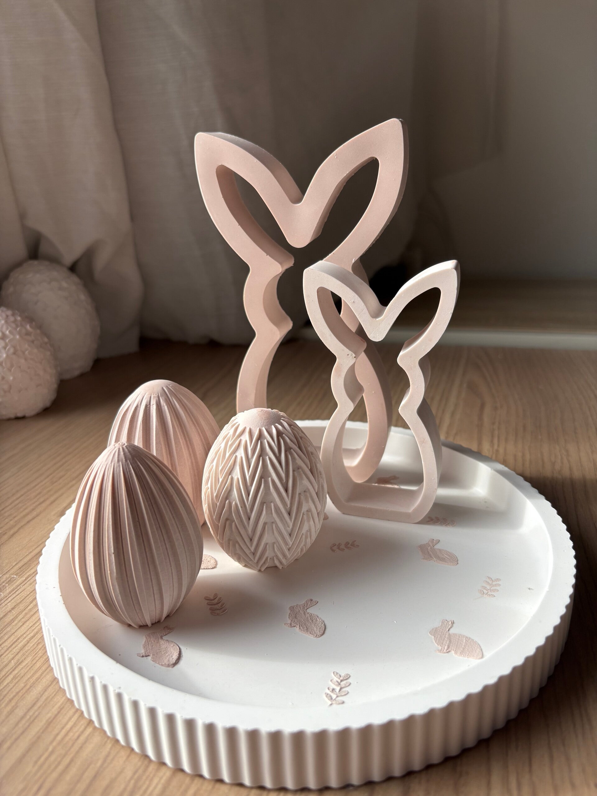Un duo de lapins ajourés délicatement façonné pour apporter une touche de tendresse à votre décoration.