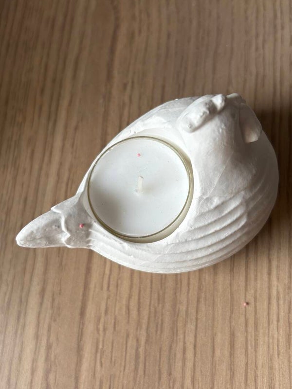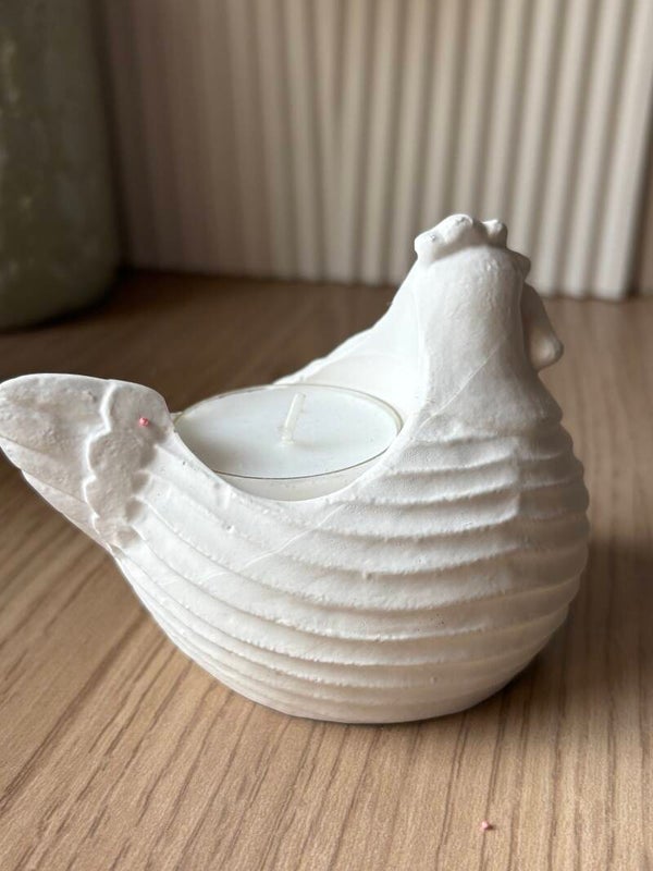 À la fois décoratif et fonctionnel, cette petite poule porte réchaud diffuse une lumière douce et enveloppante.