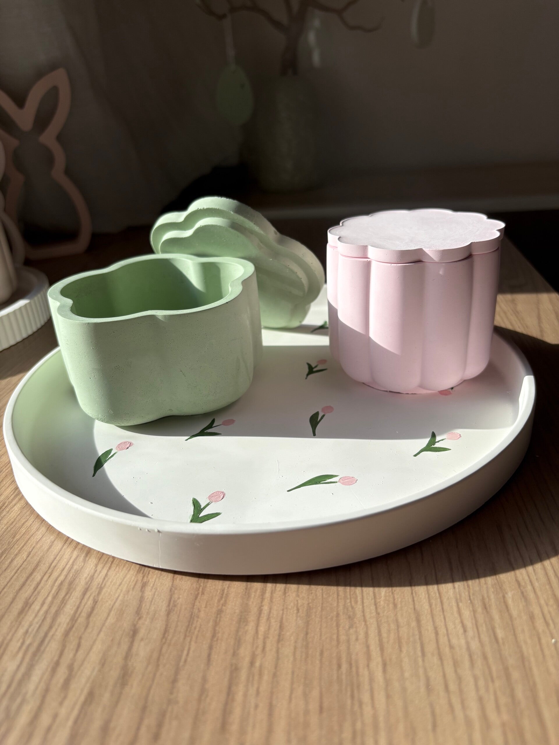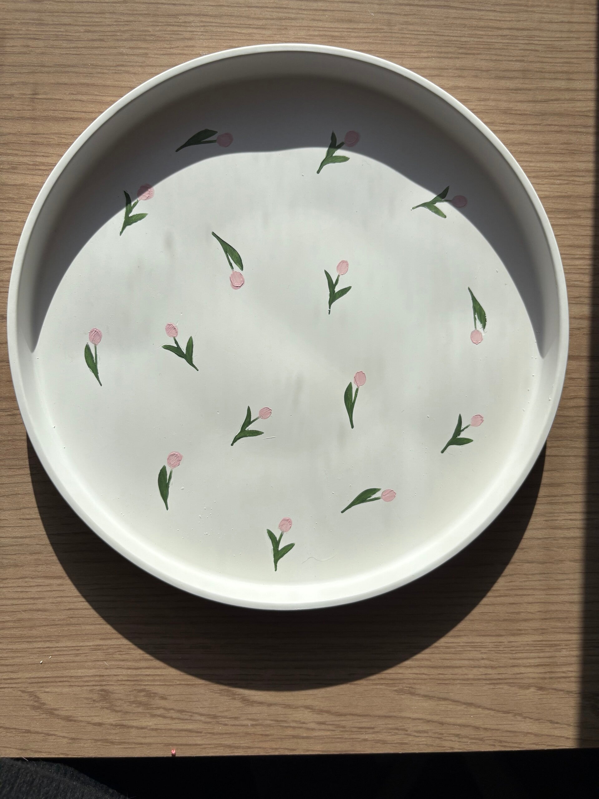 Ornée de tulipes délicates, cette assiette décorative célèbre la douceur du printemps.