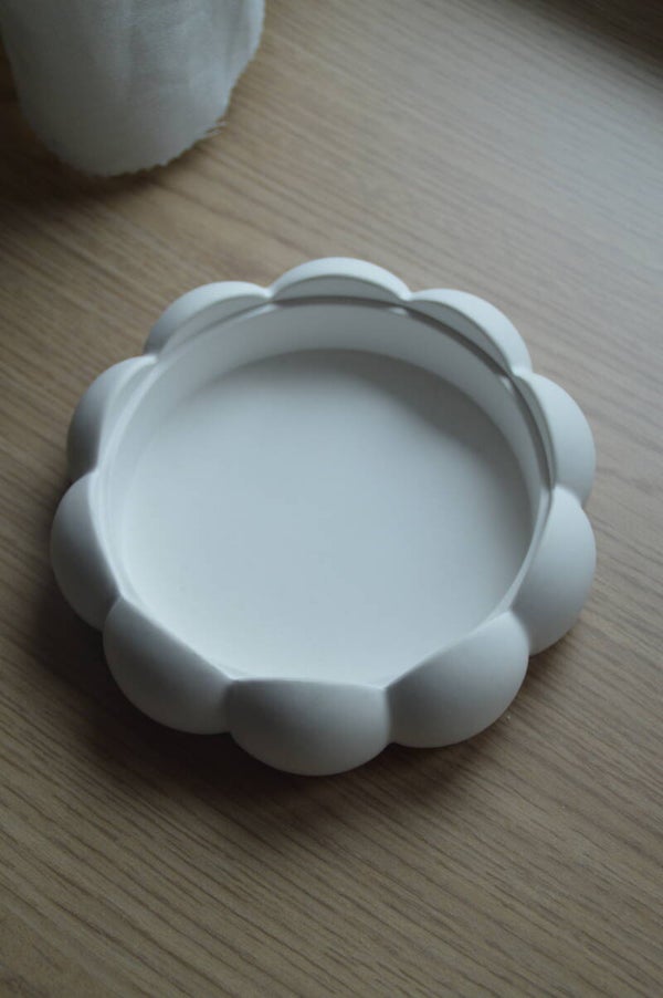 Façonné à la main en plâtre céramique, chaque vide-poche révèle une finition lisse et lumineuse.